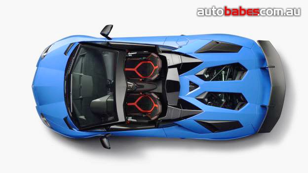 And as with the Aventador LP 700-4 Roadster, the SV Rodster comes with a two-piece hardtop made from carbon fiber featuring technologies such as RTM and Forged Composite, which deliver a perfect surface finish, allow complex design shapes and the highest possible component stiffness combined with extremely low weight. Thus, the two roof parts each weigh less than six kilograms (13.2 lb) and can be stowed easily in the luggage compartment. They provide the perfect complement to the monocoque, which is entirely made from carbon fiber.