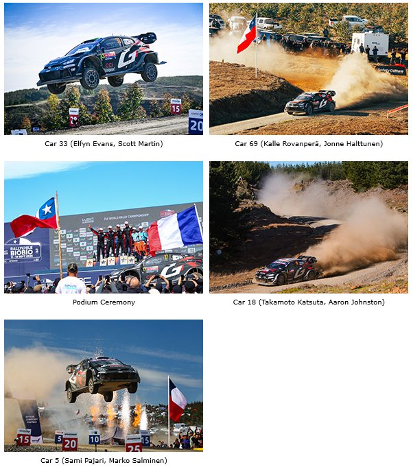 “This is another incredible result for us. For Toyota to now have more wins than any manufacturer in the WRC is a very special moment. Of course, it brings back some memories of when I was driving, but what this team is achieving now is just amazing. Everybody in the team has done a really good job across these two rallies in South America, so we’re really pleased. Seb and Elfyn both drove really well this weekend, and I think Seb drove at 103 per cent in the Power Stage to take the maximum points as well as the 103rd win. It’s going to be exciting to follow the final rallies and Kalle can’t be counted out either; he took what he could from today. Sami did a really excellent rally here and Taka finished with good speed too, and we’re all looking forward to the next rally in Central Europe and, of course, Rally Japan too.”
