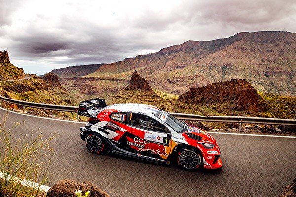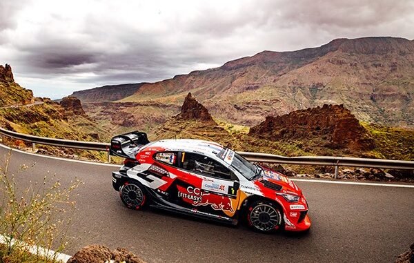 Evans scored another stage win in the afternoon’s second pass of Maspalomas and is third overall tonight, 21.9s from the lead. Sami Pajari and Takamoto Katsuta complete the top five.