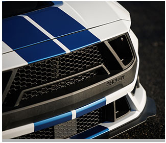 | Drivers can choose between a manual or automatic transmission, and-for the first time in decades-between fastback and convertible models. Shelby fine-tuned the GT350 to increase power, improve balance, and elevate everyday comfort without compromising high-performance capability. Every detail serves a purpose. Exclusive badging, functional heat-extracting aluminum hood, aggressive aero enhancements, and available carbon-fiber components all combine to honor the GT350’s heritage while embracing cutting-edge performance design.