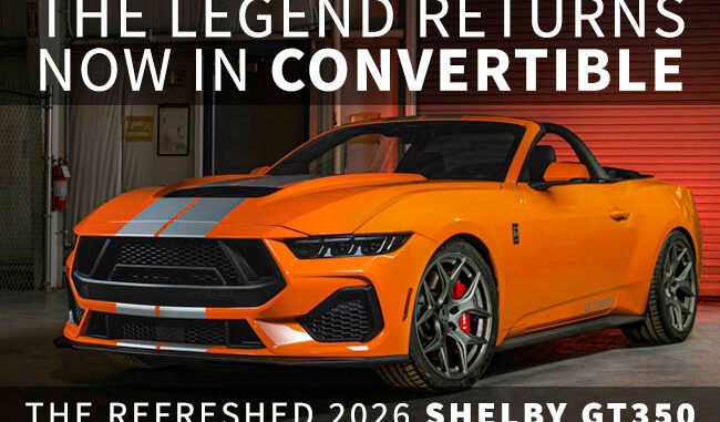 The Snake Strikes Again as Shelby GT350 Convertible Returns for 2026 Model Year, 60 Years after Introduction by Carroll ShelbyFor six decades, Shelby American has pushed the limits of performance, transforming the Mustang into an international legend. In 2026, that legacy continues with the newest Shelby GT350-engineered to deliver thrilling power, modern capability, and unmistakable Shelby character. At the heart of the GT350 is a 5.0L V8, available in a naturally aspirated 480-horsepower configuration or a supercharged 810-horsepower version. Each car receives Shelby-engineered upgrades to suspension, exhaust, aerodynamics, and cooling systems, creating a machine built for confidence on the street and dominance on the track. |