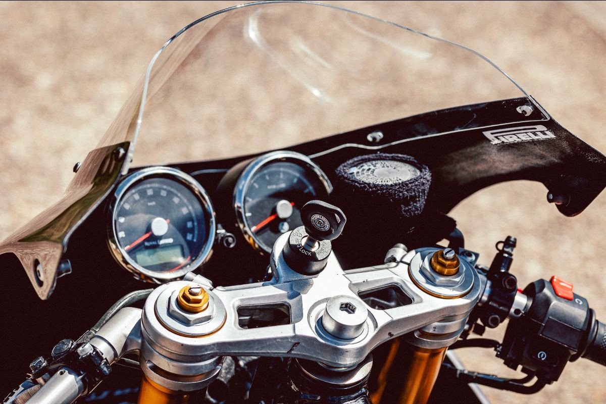 The aluminium swingarm was an old Honda item that was adapted to the new bike, with the Royal build team paying close attention to ensure that all the bike’s new geometry was bang on. Similarly, the front end was replaced with a Triumph Daytona fork and wheel combo that came from the factory with some very capable Nissin stoppers.