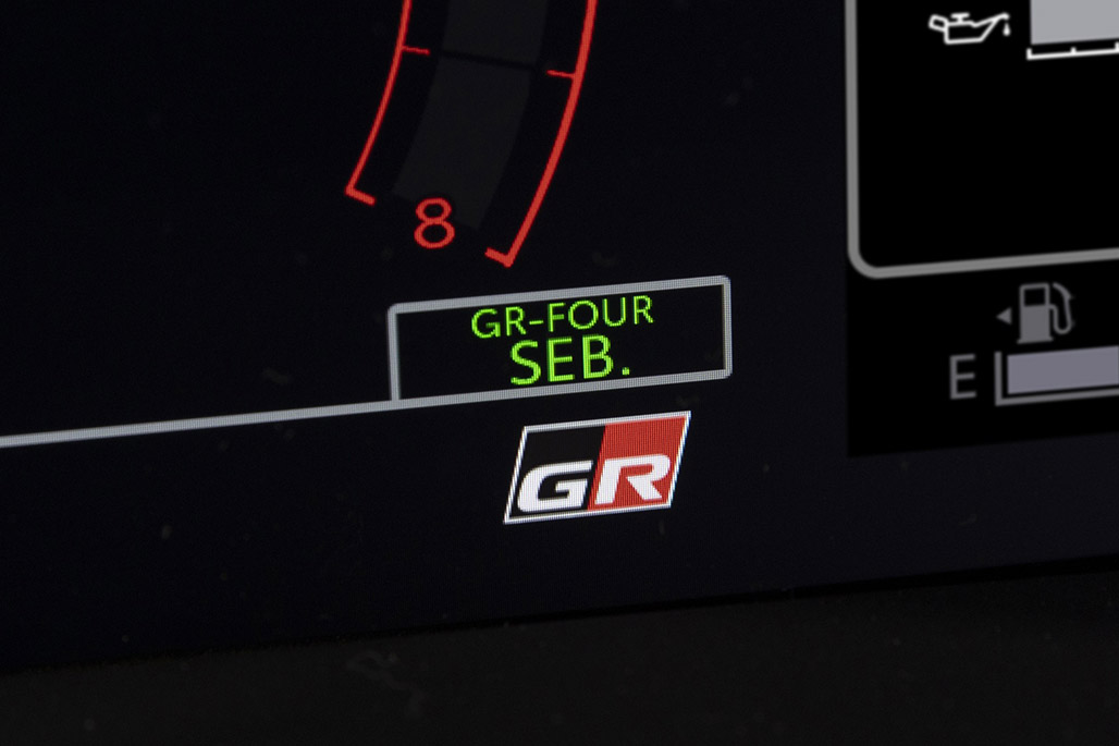 An exclusive 4WD control mode was developed together with Ogier, in which a “SEB.” mode replaces the “TRACK” mode of the base vehicle. The “SEB.” mode is a 4WD control mode with 40:60 front/rear torque distribution designed to enable vehicle control through rear-wheel driving force while maintaining front-wheel steering responsiveness. It aims to contribute to shorter times in competitive driving by increasing car-driver unity and improving vehicle control at high speeds.
