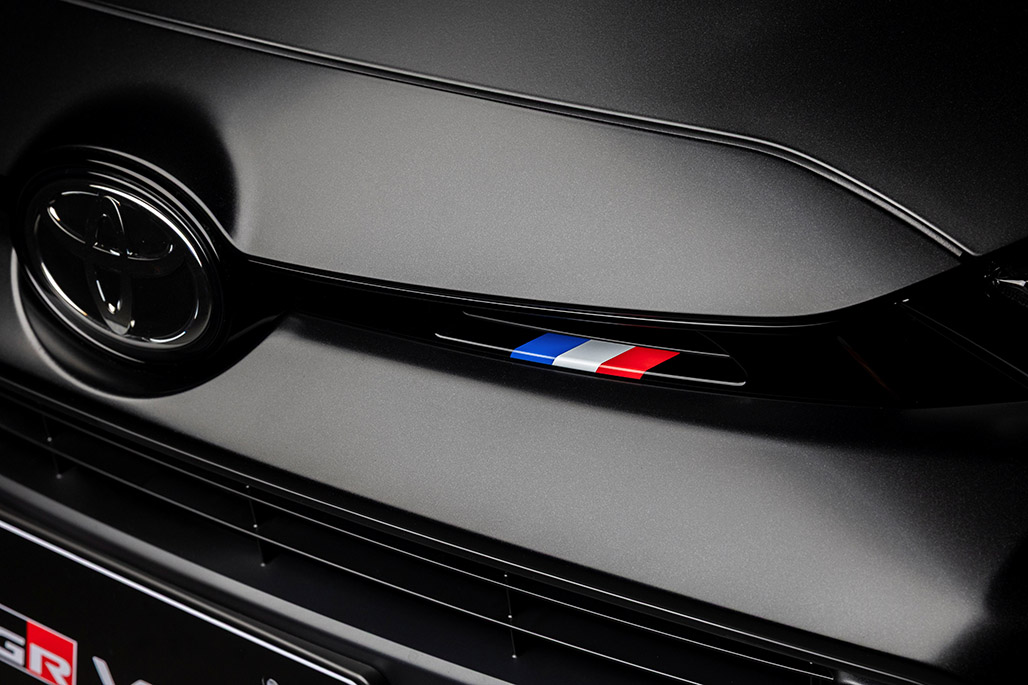 The exterior color is the new “Black Gravite”, which was exclusively developed for the GR Yaris Sébastien Ogier 9x World Champion Edition and is a color that symbolizes TGR’s motorsports activities in 2025. It is complemented by wheels in matte black. The brake calipers are in Ogier’s signature blue, while the radiator grille incorporates a tricolor decoration inspired by the flag of Ogier’s home country of France.